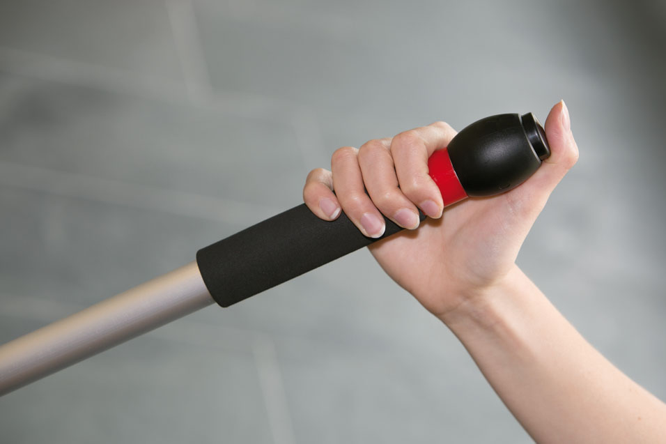 Outil de nettoyage pratique composé d‘un manche en alu avec réservoir intégré et porte-chiffon velcro pour un nettoyage facile des revêtements de sol. Plus besoin de porter des seaux. Remplir 450 ml de solution de nettoyage dans le manche en alu, actionner le bouton vaporisateur – essuyer – propre.