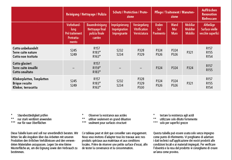 Wie der Name schon verrät werden diese Platten aus Ton und verschiedenen Zusätzen gebrannt. Einen Material das einen rustikalen, warmen Akzent setzt. geeignet für Liebhaber, die einen erhöhten Pflegeaufwand in Kauf nehmen. Je nach Herkunft, wird die Tonplatte mit mehr oder weniger Druck gepresst und bei unterschiedlichen Temperaturen im Ofen gebrannt. Je poröser eine Tonplatte ist, desto saugfähiger ist sie. Je rauer die Oberfläche, umso grösser ist der Reinigungsaufwand.